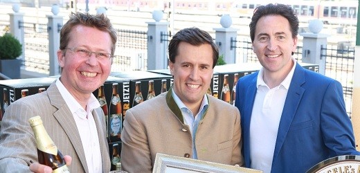 Foto: Preisverleihung in der Riegele BrauWelt vom 5.9.2013 mit Matthias Kliemt (ProBier-Club), Biersommelierweltmeister Sebastian Priller-Riegele und Frank Winkel (ProBierClub)